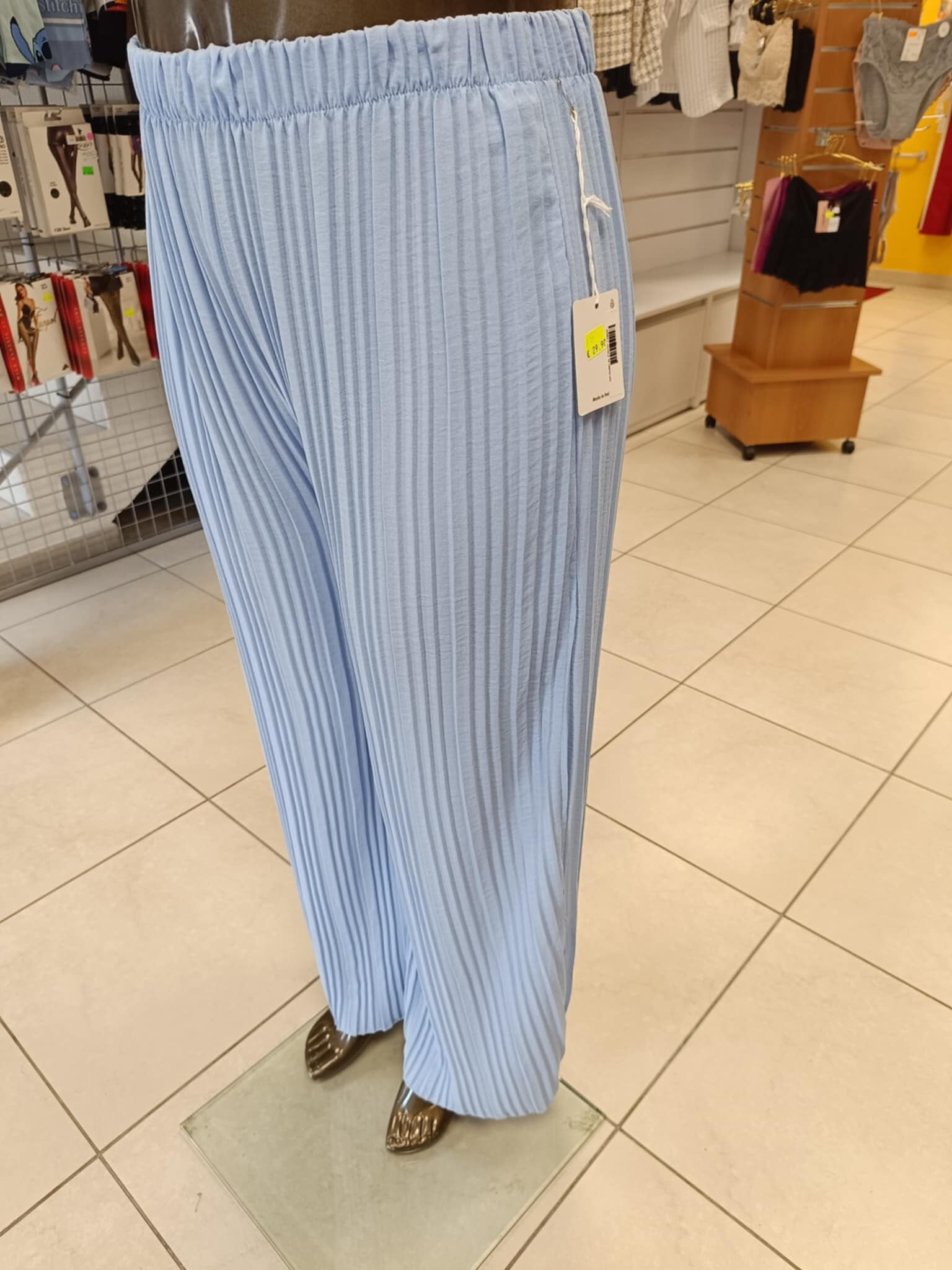 Pantalon fuide et plissé grande taille. La taille est élastique et haute.