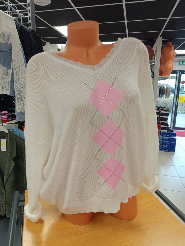 Top effet maille fluide et doux.
